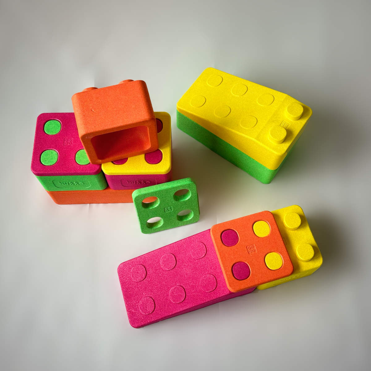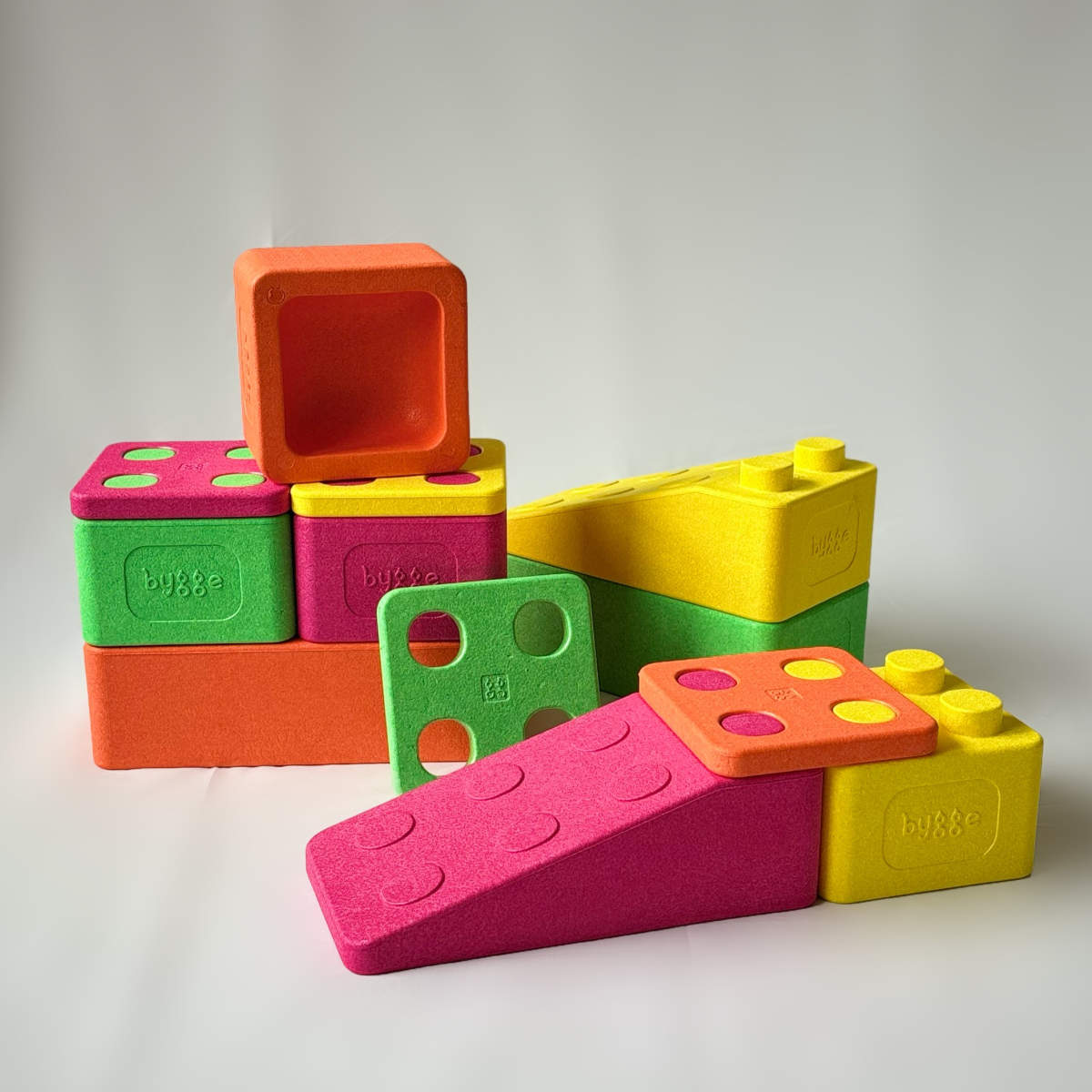Bygge-bouwstenen staan voor duurzaamheid en milieuvriendelijkheid. Het gebruikte geëxpandeerde polypropyleen (EPP) is niet alleen licht en stabiel, maar ook milieuvriendelijk: Het is 100% recyclebaar, speeksel- en waterbestendig, evenals UV-bestendig. Vrij van schadelijke toevoegingen, vergezelt het jou en je omgeving zonder zorgen.