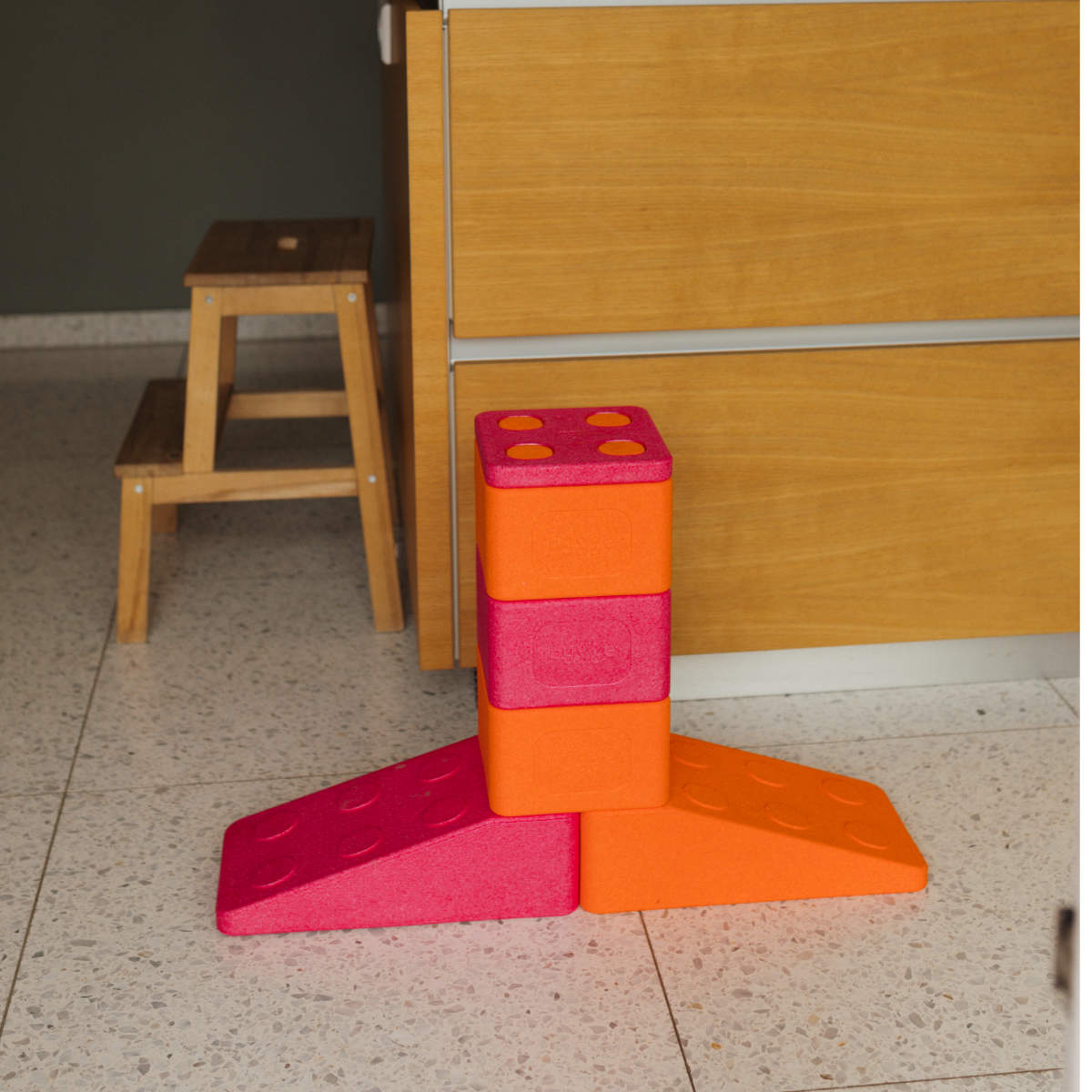 Of het nu een opstapje is om beter bij de wastafel te kunnen of een klein bankje - met bygge bouwstenen in verschillende maten en kleuren zijn je creativiteit geen grenzen gesteld.