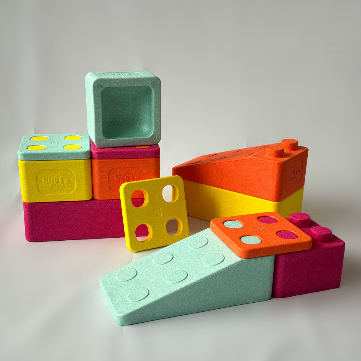 Bygge-bouwstenen staan voor duurzaamheid en milieuvriendelijkheid. Het gebruikte geëxpandeerde polypropyleen (EPP) is niet alleen licht en stabiel, maar ook milieuvriendelijk: Het is 100% recyclebaar, speeksel- en waterbestendig, evenals UV-bestendig. Vrij van schadelijke toevoegingen, vergezelt het jou en je omgeving zonder zorgen.