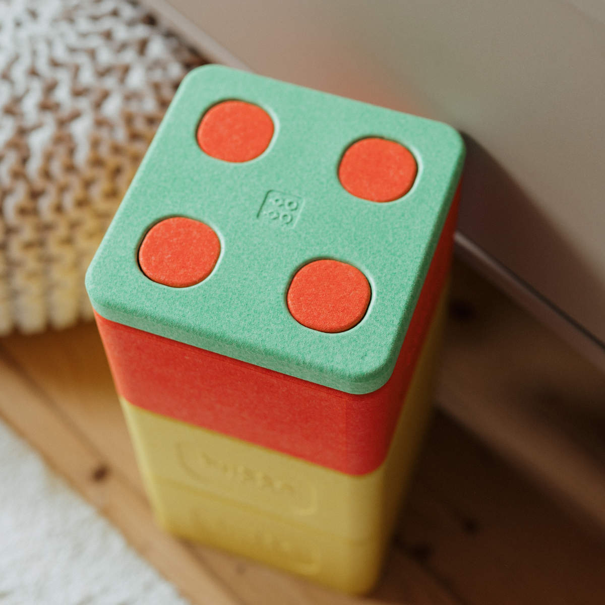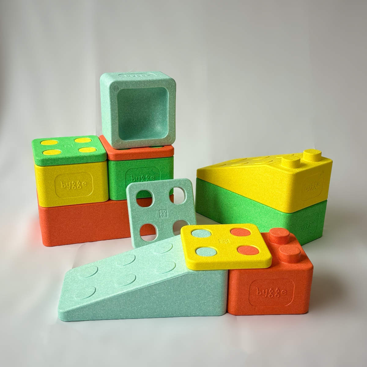 Bygge-bouwstenen staan voor duurzaamheid en milieuvriendelijkheid. Het gebruikte geëxpandeerde polypropyleen (EPP) is niet alleen licht en stabiel, maar ook milieuvriendelijk: Het is 100% recyclebaar, speeksel- en waterbestendig, evenals UV-bestendig. Vrij van schadelijke toevoegingen, vergezelt het jou en je omgeving zonder zorgen.
