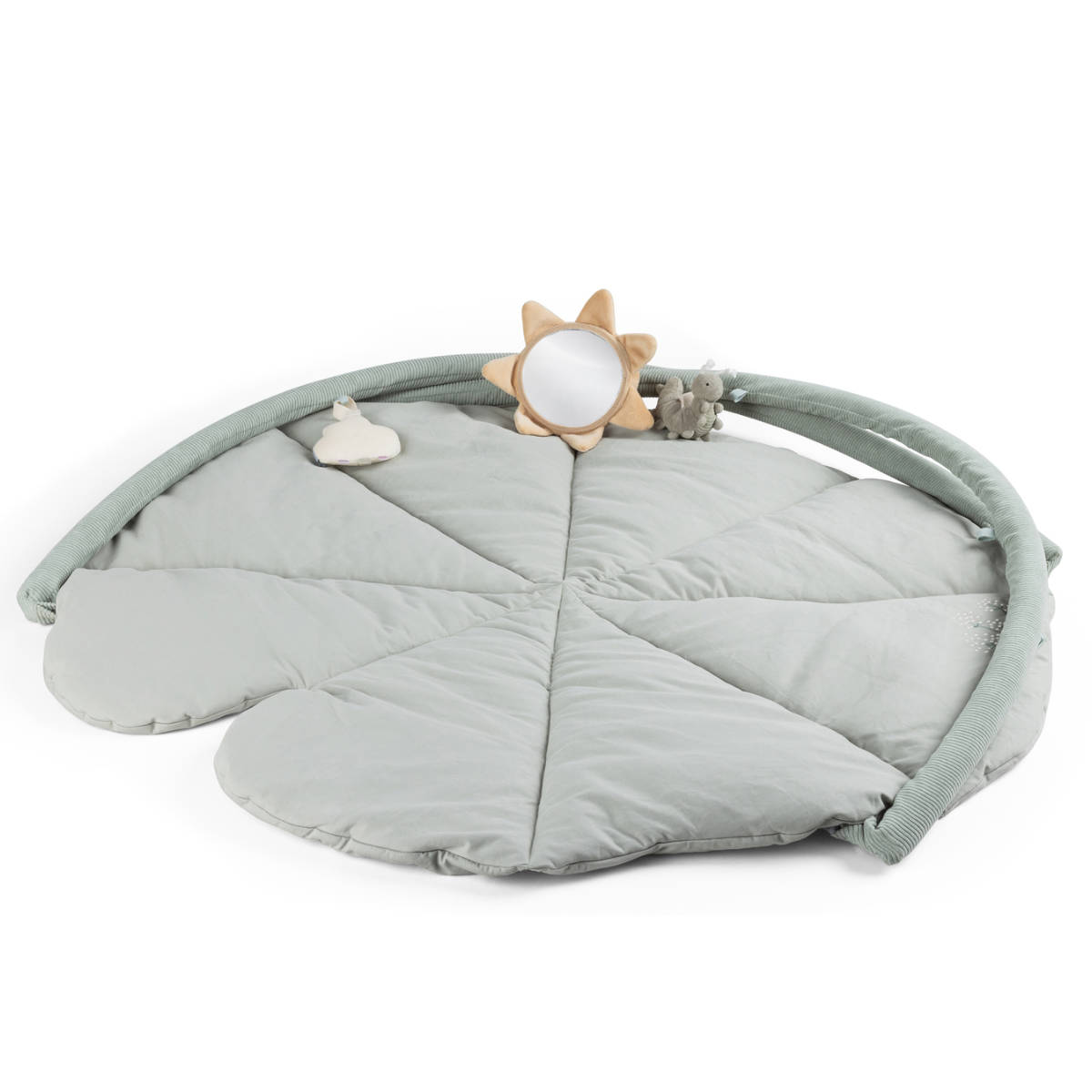 Dankzij de lichte vulling biedt de speelmat een zachte, isolerende ondergrond die je baby beschermt tegen koude vloeren. Het flexibele ontwerp maakt het mogelijk om de mat ook zonder bogen te gebruiken als comfortabele speelmat, praktische verschoonmat of later als gezellig zitplekje. Bovendien is de mat gemakkelijk op te vouwen en ideaal voor bezoekjes aan grootouders of vakanties.