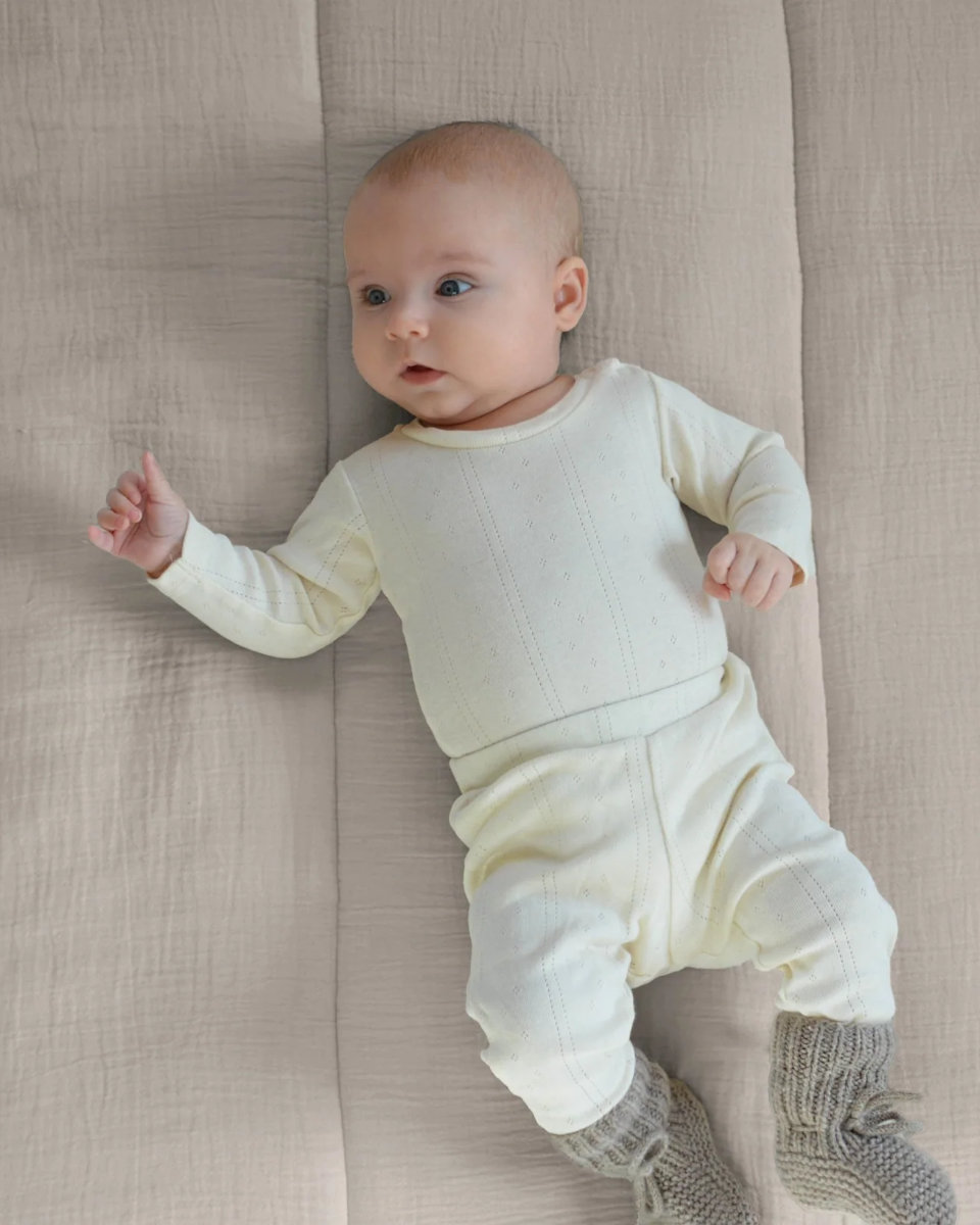 De speelmat is gemaakt van 100% biologisch mousseline katoen en gevuld met polyester voor een heerlijk gewatteerd oppervlak. Perfect comfort, zowel in de babykamer, woonkamer als onderweg.