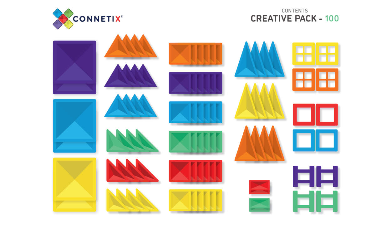 Deze 100-delige set van Connetix is de perfecte startset en zorgt voor vele uren van grenzeloze creativiteit, plezier en ongestructureerd spel. De Creatieve Set bevat een verscheidenheid aan vormen in verschillende kleuren en kan worden gebruikt om verschillende modellen te bouwen, van eenvoudige geometrische oppervlakken en vormen tot creatieve structuren zoals kastelen, torens en bruggen.