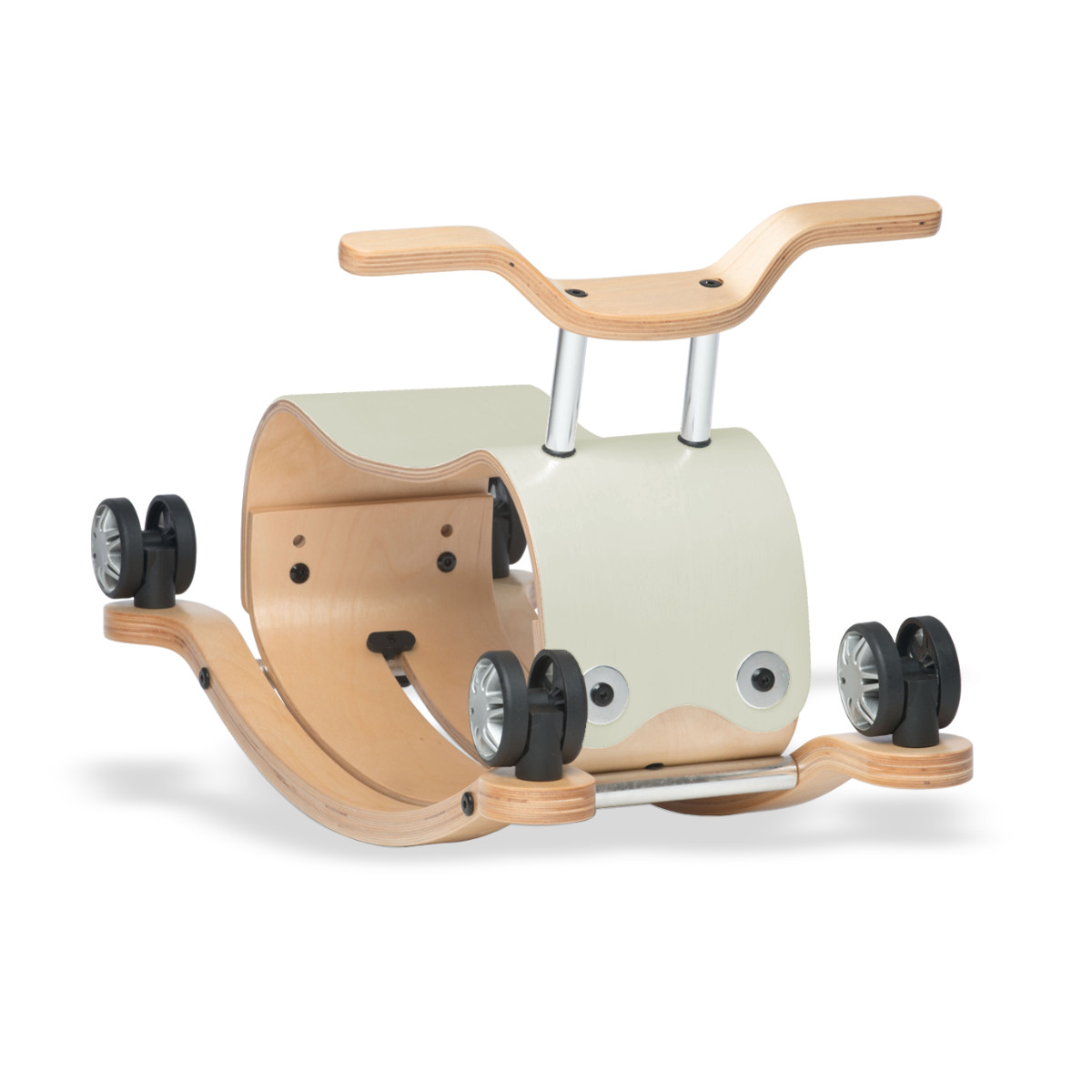 - Innovatief klapmechanisme voor snelle omvorming van een schommelpaard naar een loop- en rijvoertuig