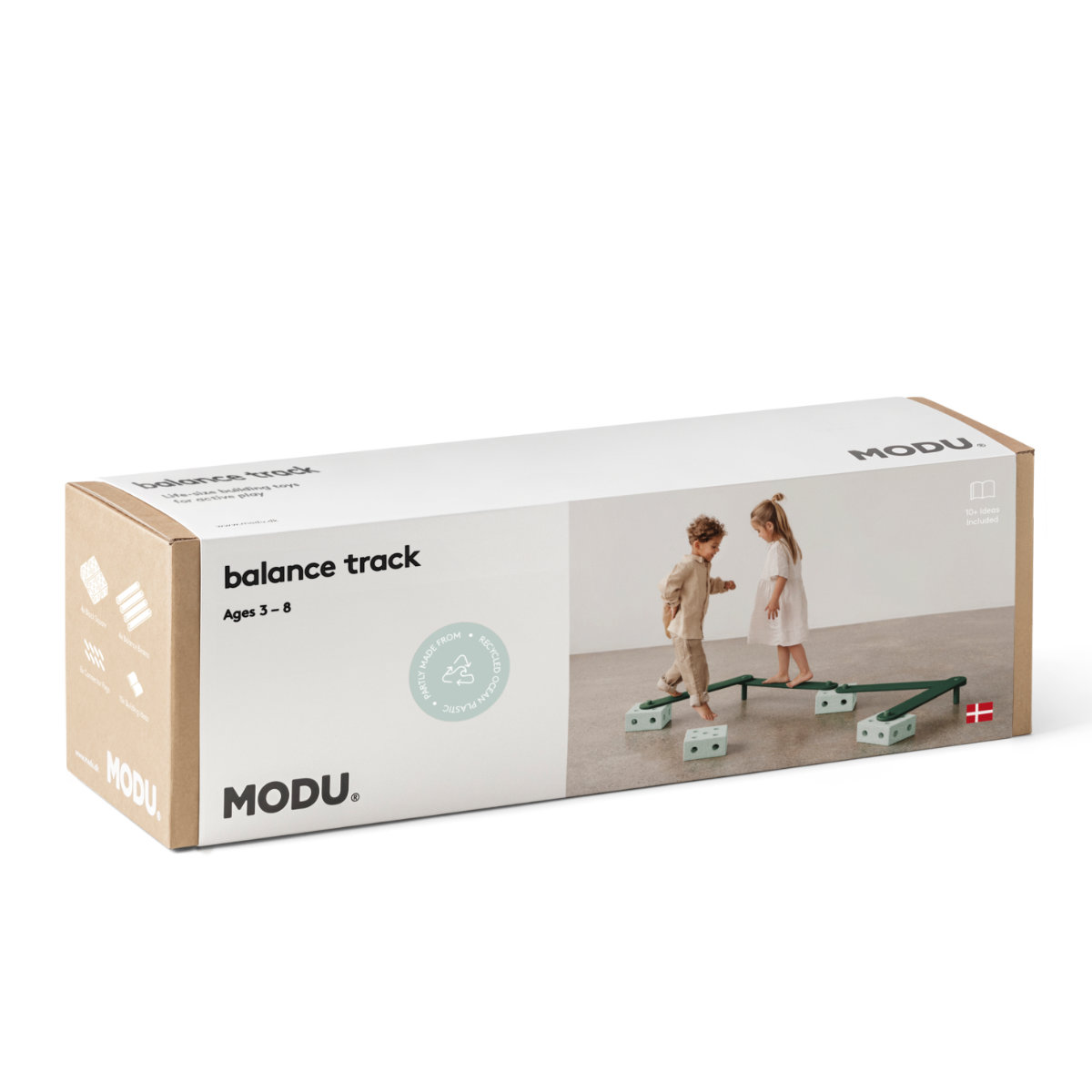 Het Balance Track Set is compatibel met andere MODU-sets en kan worden uitgebreid. Zo groeit het speelgoed mee met je kindje en biedt het continu nieuwe uitdagingen en speelmogelijkheden.