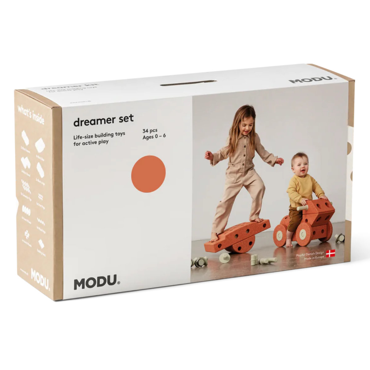 Het Modu Dreamer Kit is een innovatieve en fantasierijke bouwset die kinderen en het hele gezin boeit. Met in totaal 34 onderdelen, inclusief blokken, connectors en wielen, biedt de set talloze bouwcombinaties en bevordert het creativiteit, motoriek en ruimtelijk inzicht.