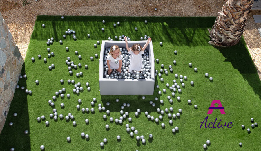 Ballenbad Active van Misioo verkrijgbaar bij kindermaXX beperkt zich niet tot de kinderkamer. De Active collectie is gemaakt van UV-bestendig en waterdicht materiaal en zorgt ervoor dat het plezier ook op warme zomerdagen in de tuin kan plaatsvinden.