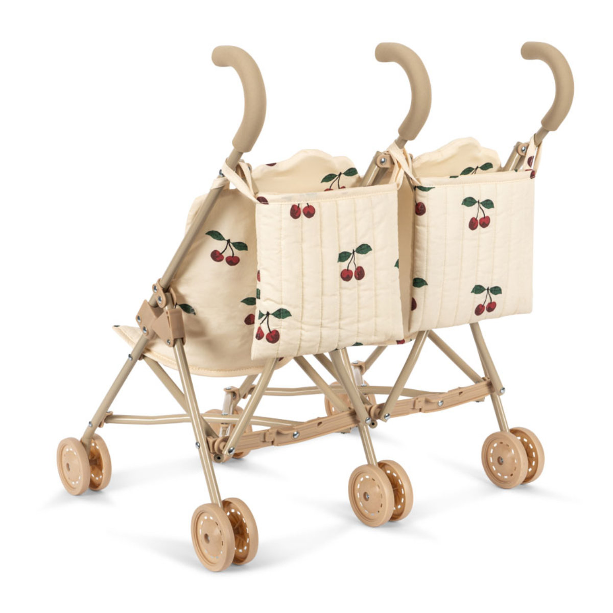 Met de Konges Sløjd Twin Poppenwagen kunnen kinderen twee poppen veilig en comfortabel meenemen op hun avonturen. De liefdevol ontworpen tweelingwagen stimuleert fantasierijk rollenspel, prikkelt de verbeelding en nodigt uit tot onvergetelijke wandelingen.