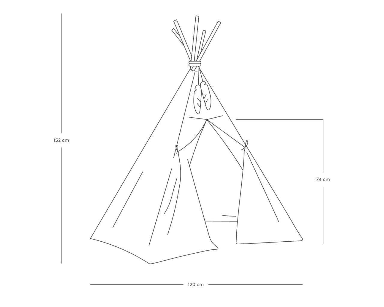 - Inbegrepen in het pakket: Draagtas, 2 houten veren, Tipi, palen