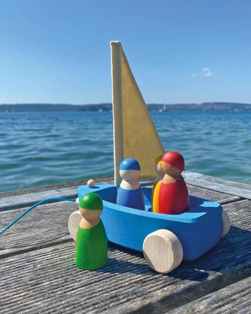 "Grimm’s Nachzieh-Strandsegler aus Holz mit Figuren"