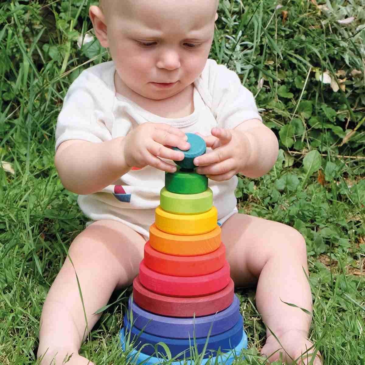 De stapeltoren biedt een uitstekende gelegenheid om de sensorische vaardigheden van kinderen te bevorderen door verschillende kleuren en maten te identificeren. Tien kleurrijke schijven nodigen uit om te stapelen, sorteren en bouwen, wat niet alleen de fijne motoriek verbetert maar ook de hand-oog coördinatie.