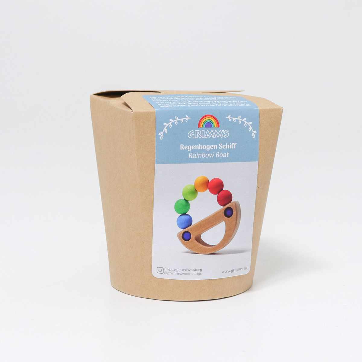 Het Grimm's Regenboog Grijpspeeltje in de vorm van een schip, versierd met kleurrijke kralen, nodigt de kleintjes uit om te grijpen en te verkennen. Vervaardigd uit hoogwaardige houtsoorten, biedt dit grijpspeeltje een veilige en stimulerende omgeving voor baby's.