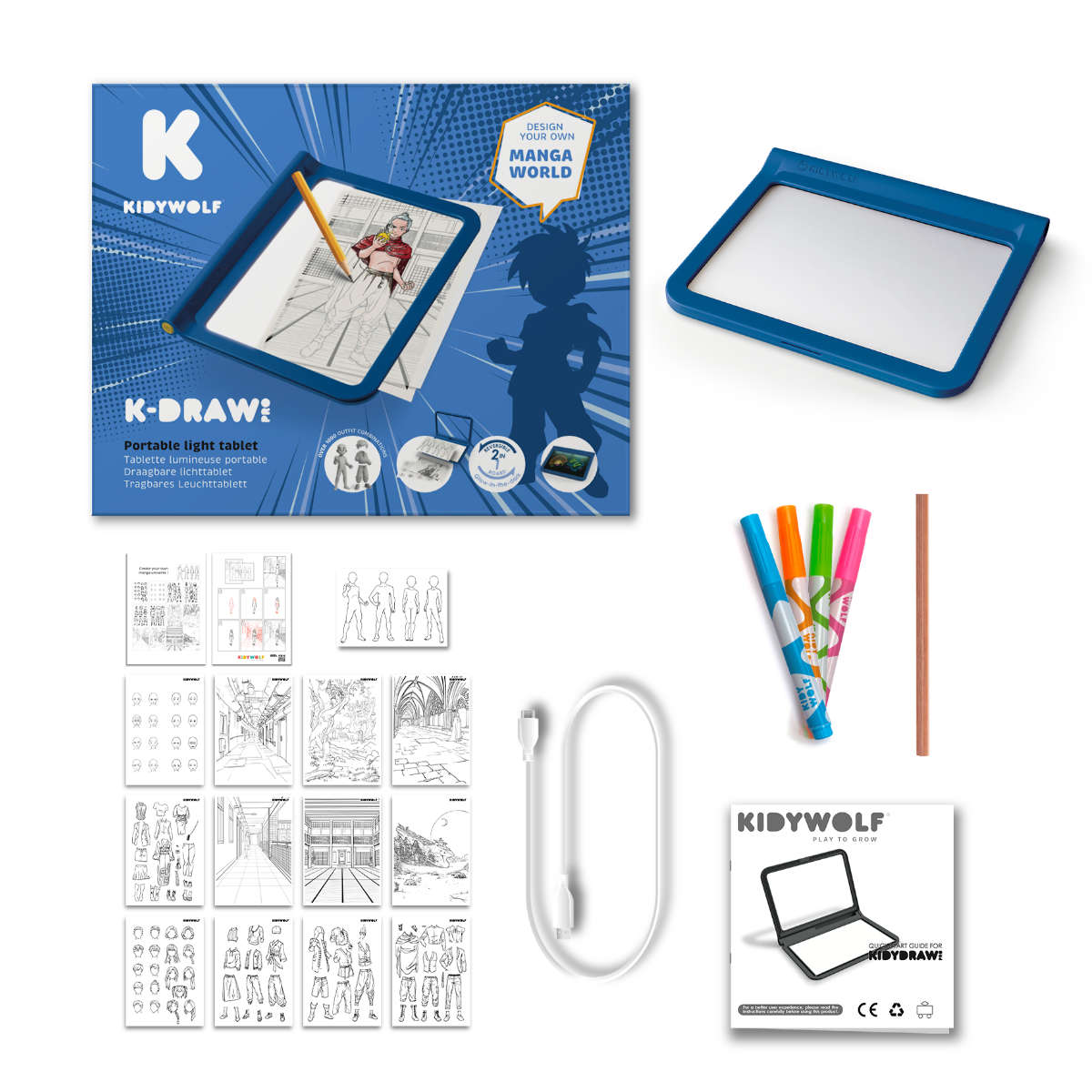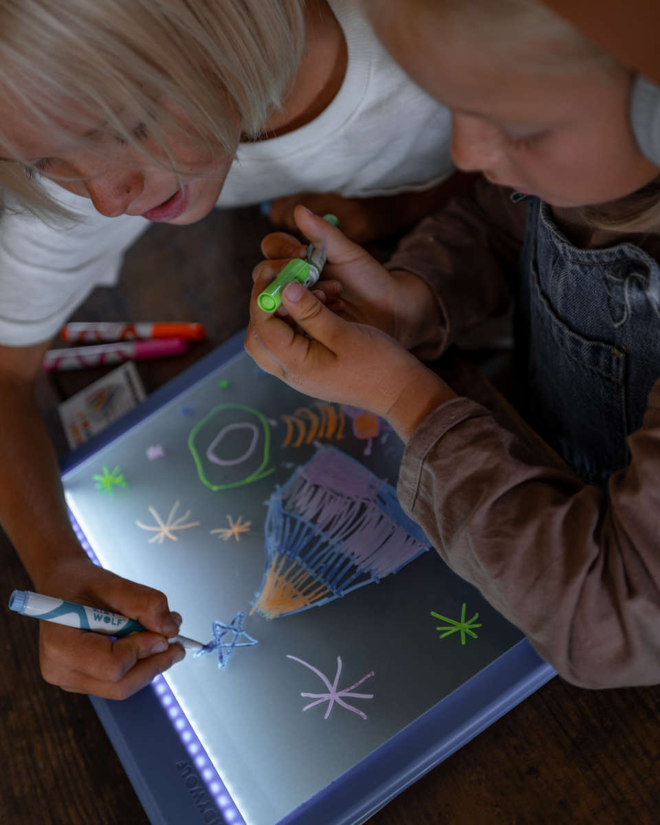 Teken, leer & heb plezier! Met de Kidywolf Kidydraw Pro wordt creativiteit een echt avontuur. Dit draagbare lichtbord biedt kinderen vanaf 5 jaar eindeloze mogelijkheden om letters, cijfers of hun eigen kunstwerken te maken – met licht, kleur en fantasie.