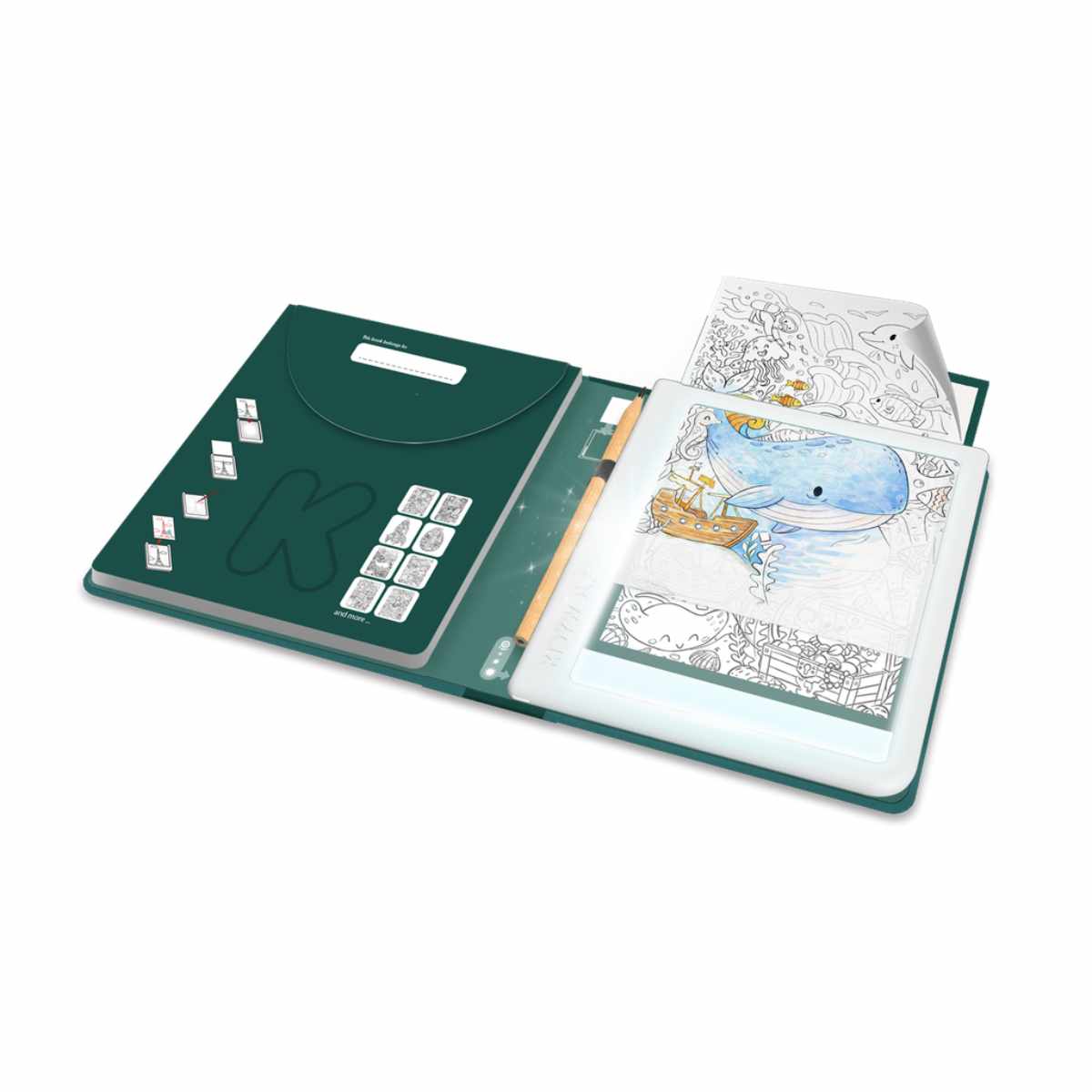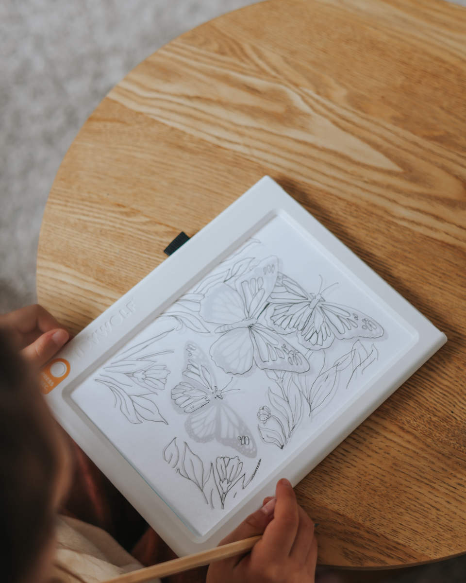 Het gebruik is kinderspel: leg gewoon een van de 30 sjablonen op het licht-tablet, zet het licht aan en volg de contouren. Daarna kan het kunstwerk individueel worden ingekleurd en gepersonaliseerd. Omdat het tablet magnetisch is, verschuift er niets – zo lukken zelfs complexe tekeningen in een handomdraai. Dit bevordert niet alleen de fijne motoriek, maar zorgt ook voor een ontspannen bezigheid ver weg van digitale schermen.