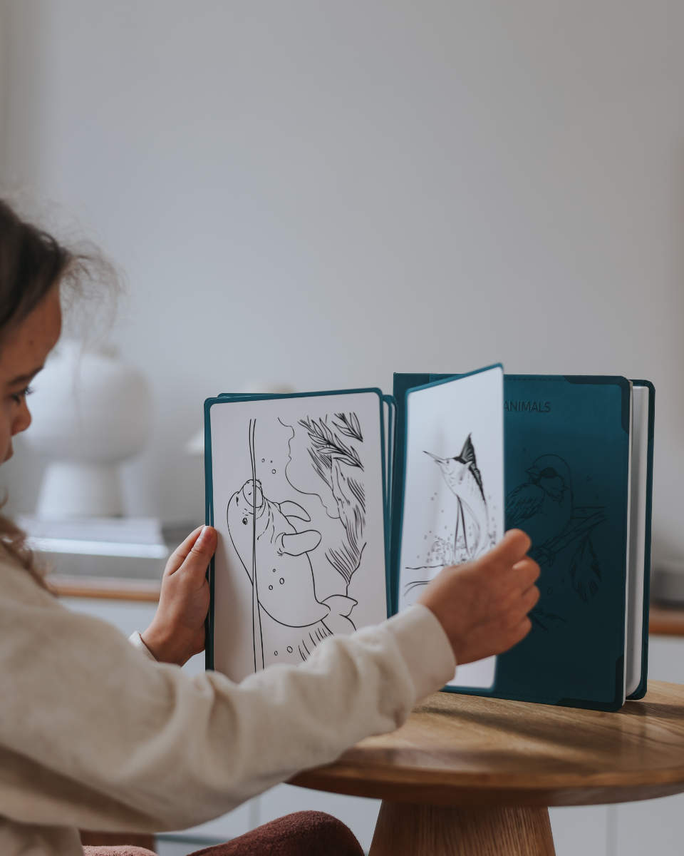 De Kidydraw is niet zomaar een tablet. Het is geïntegreerd in een praktisch boekje waarin het magnetische, afneembare licht-tablet stevig vastzit. Elke versie van de tekentafel bevat 30 verschillende tekeningen die speciaal zijn afgestemd op een bepaalde leeftijdsgroep. Afhankelijk van de gekozen variant (6+, 8+ of 10+) sluit de tekentafel perfect aan op de vaardigheden van je kind.
