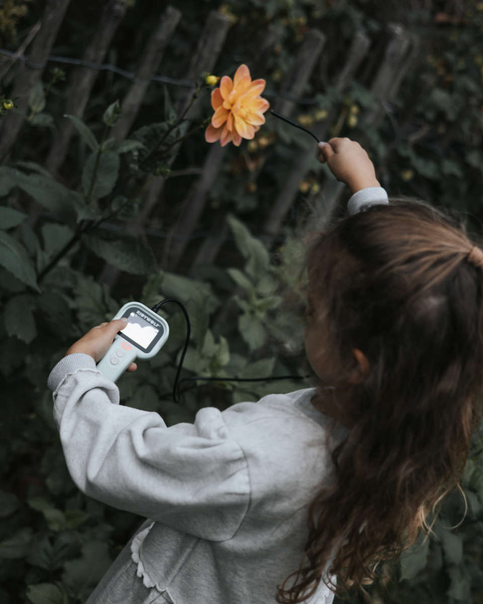 De Kidyexplore nodigt kinderen uit om de wereld met nieuwsgierige ogen te zien. Dankzij de flexibele 1-meter kabel en de ingebouwde camera kunnen ze smalle, donkere of verborgen plekken onderzoeken – van dierenholen tot bladeren hoog in de bomen. Zo wordt nieuwsgierigheid gestimuleerd en leren ze spelenderwijs.