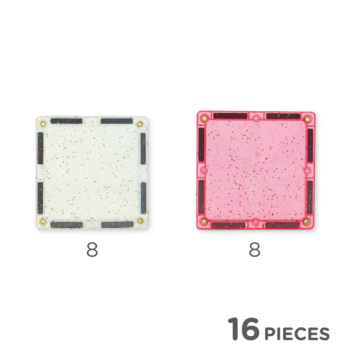 Cleverclixx Glitter Tiles Pack Transparant/Roze – 16 Stuks voor Sprankelende Creaties