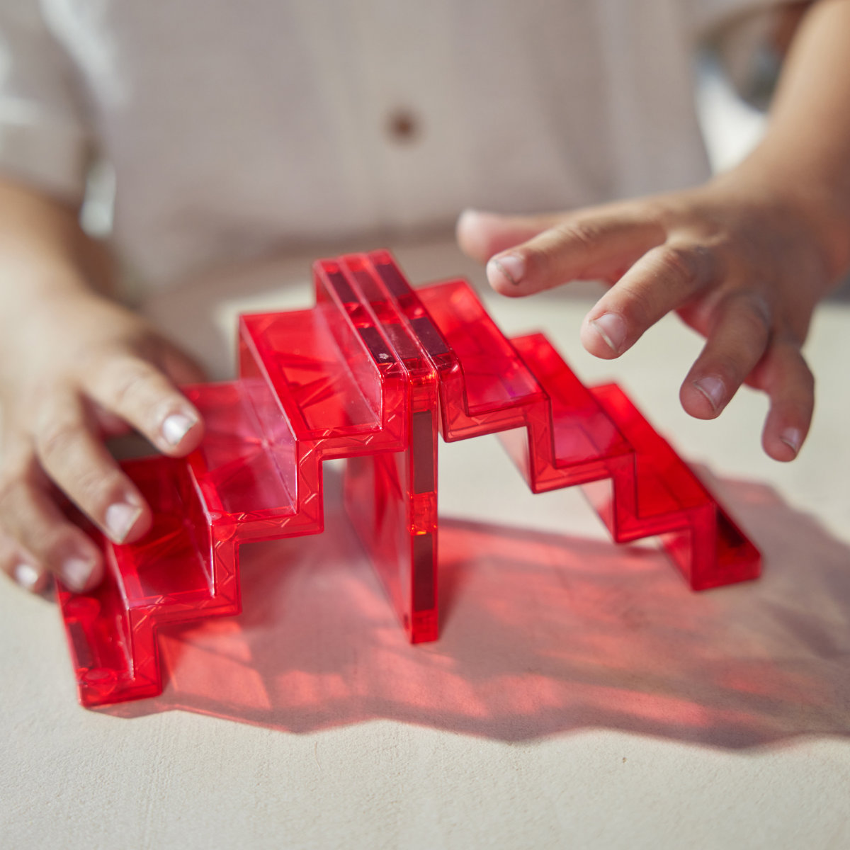 Met het Stairs Set ontdekken kinderen hoogteverschillen en leren ze nieuwe bouwmethodes. Tijdens het bouwen ontwikkelen ze creativiteit, concentratie, fijne motoriek en ruimtelijk inzicht. Het spel ondersteunt bovendien STEAM-leren (Science, Technology, Engineering, Arts & Mathematics).