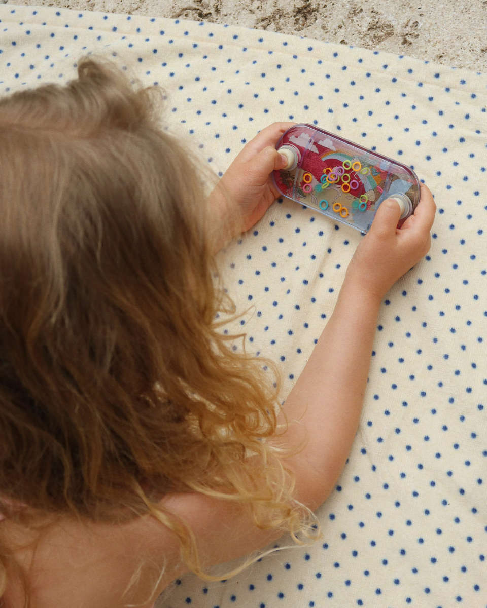 Het Konges Sløjd water ringenspel is een klassiek behendigheidsspel dat kinderen uitdaagt om rustig en geconcentreerd te spelen. Door op de knopjes te drukken bewegen de gekleurde ringen door het water richting de pinnetjes.