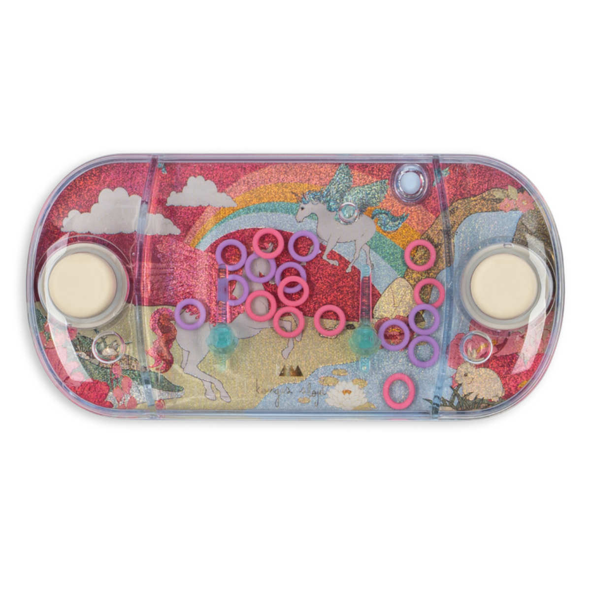 Het Konges Sløjd water ringenspel is een klassiek behendigheidsspel dat kinderen uitdaagt om rustig en geconcentreerd te spelen. Door op de knopjes te drukken bewegen de gekleurde ringen door het water richting de pinnetjes.