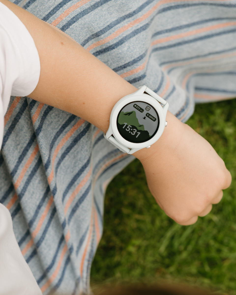 Geen spelletjes, geen GPS, geen SIM – zo blijf je geconcentreerd en vrij van digitale risico’s. Extra handig: het ICE-nummer (In Case of Emergency) kan direct op het scherm worden weergegeven, wat ouders geruststelt.