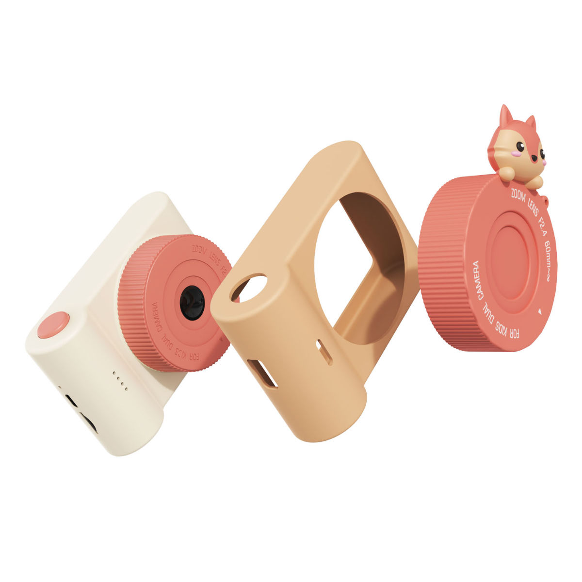 De dierenvormige lenskap beschermt tegen krassen en geeft de camera een vrolijke uitstraling.