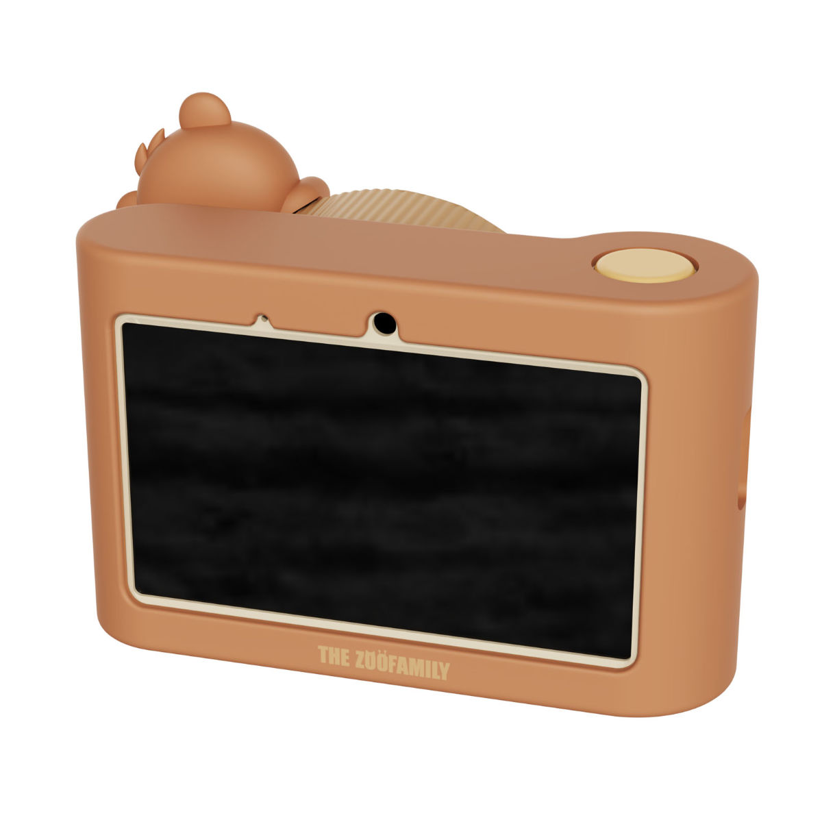 De dierenvormige lenskap beschermt tegen krassen en geeft de camera een vrolijke uitstraling.