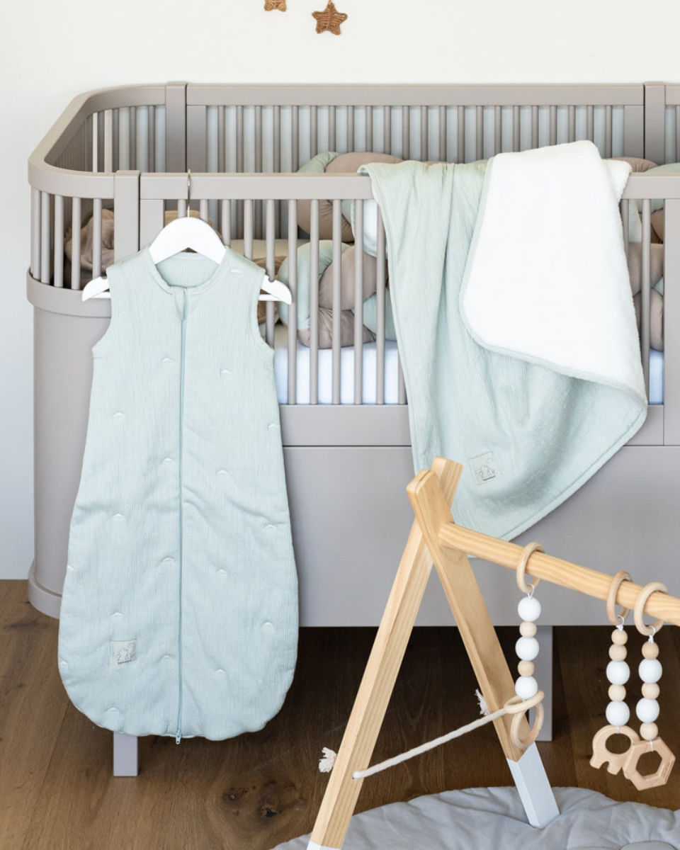 De bovenzijde van 95% katoen en 5% elastaan zorgt voor de nodige flexibiliteit, terwijl de onderzijde van zacht polyester een perfect slaapklimaat garandeert. Katoen is van nature bijzonder slijtvast en laat de huid van je baby ademen – zo wordt warmteophoping effectief voorkomen.
