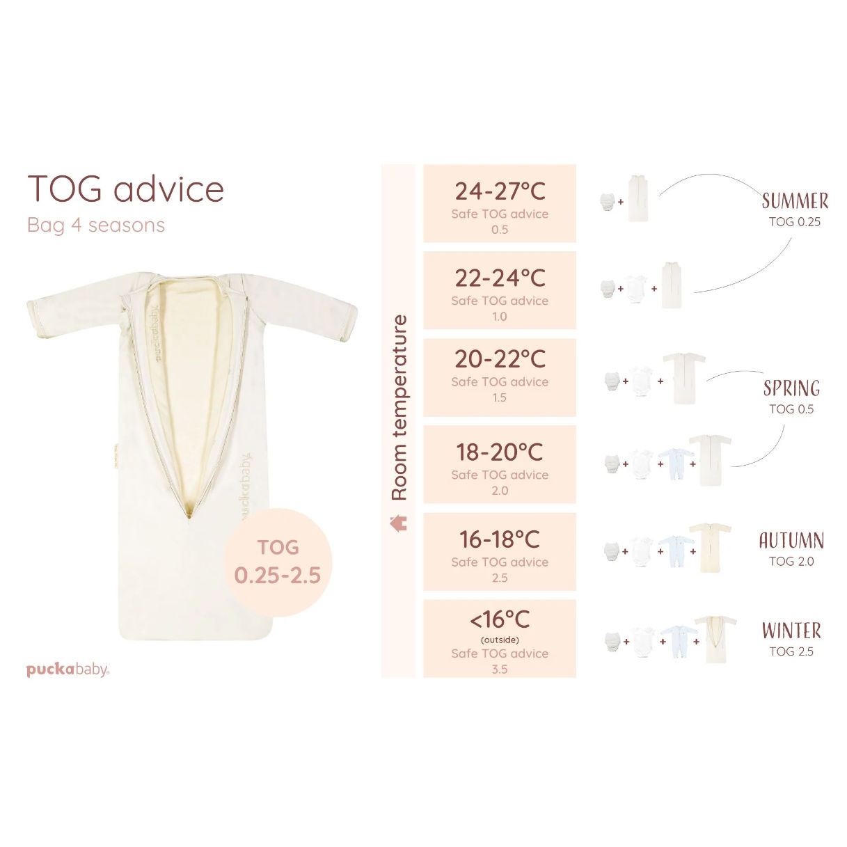 De Puckababy 4 seizoenen baby slaapzak en kinderslaapzak is een echte allrounder. Het kan niet alleen aan de seizoenen worden aangepast, het groeit ook met je kindje mee! De Puckababy slaapzak is geschikt van 6 maanden tot 2,5 jaar, omdat hij in lengte verstelbaar is. Met deze slaapzak zal je kindje het nooit meer koud hebben of zweterig zijn.