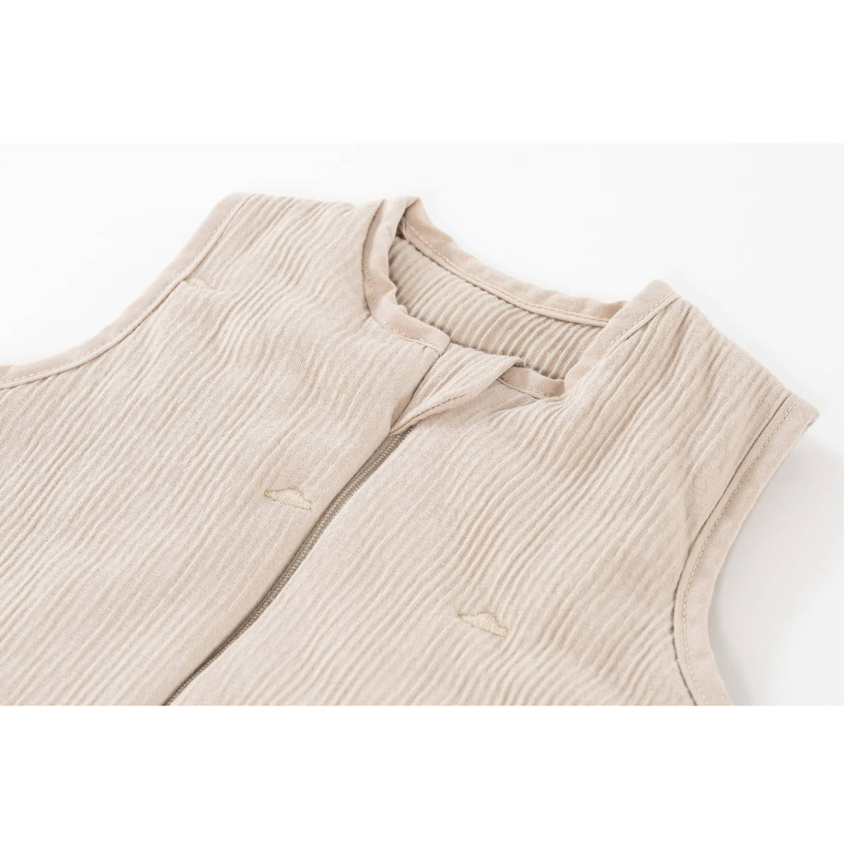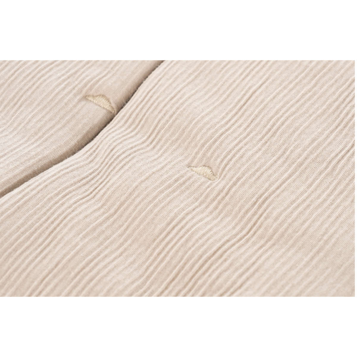 Wat deze slaapzak zo bijzonder maakt, is de hoogwaardige katoenen crinkle-stof. Door het aandeel elastaan is hij extra rekbaar, waardoor je baby vrij kan bewegen zonder zich beperkt te voelen. Belangrijke verzorgingstip: Natuurlijke materialen zoals katoen kunnen bij de eerste wasbeurt tot 10% krimpen. Hiermee is bij de ontwikkeling rekening gehouden – een grotere maat kiezen is niet nodig.