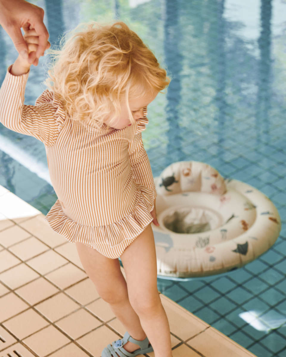 Bereid je baby voor op onvergetelijke uren aan het water! Het Liewood Sille baby badpak combineert Deens design met de hoogste functionaliteit. Dankzij de karakteristieke seersucker-structuur en de speelse details is dit badpak niet alleen een optisch hoogtepunt, maar beschermt het je kleintje ook betrouwbaar tegen de zon.
