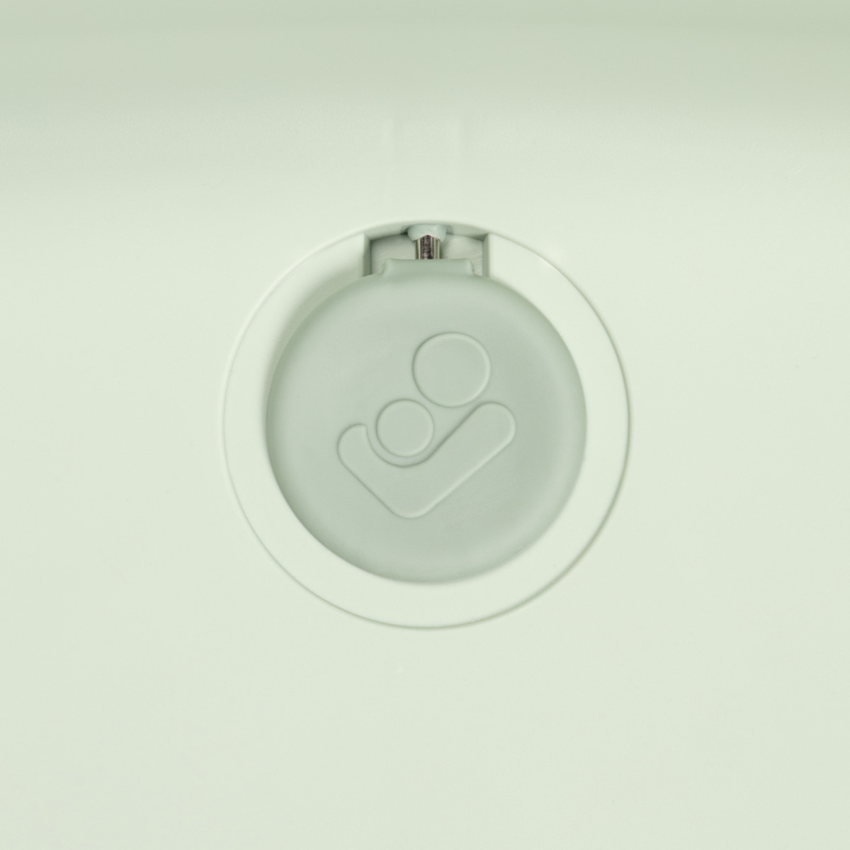 De ingebouwde HighSense-thermometer meet nauwkeurig de watertemperatuur op de bodem van het bad, waar het het warmst is. Met één aanraking geeft het display aan of het water te koud (blauw), precies goed (groen) of te heet (rood) is – voor maximale veiligheid.