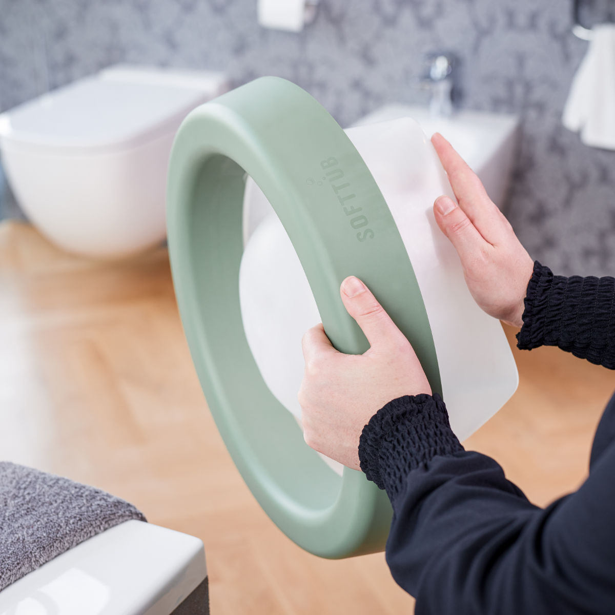 - De witte emmer wordt geleverd zonder deksel, terwijl de groene emmer inclusief een praktisch deksel komt, waardoor de Softtub als krukje gebruikt kan worden