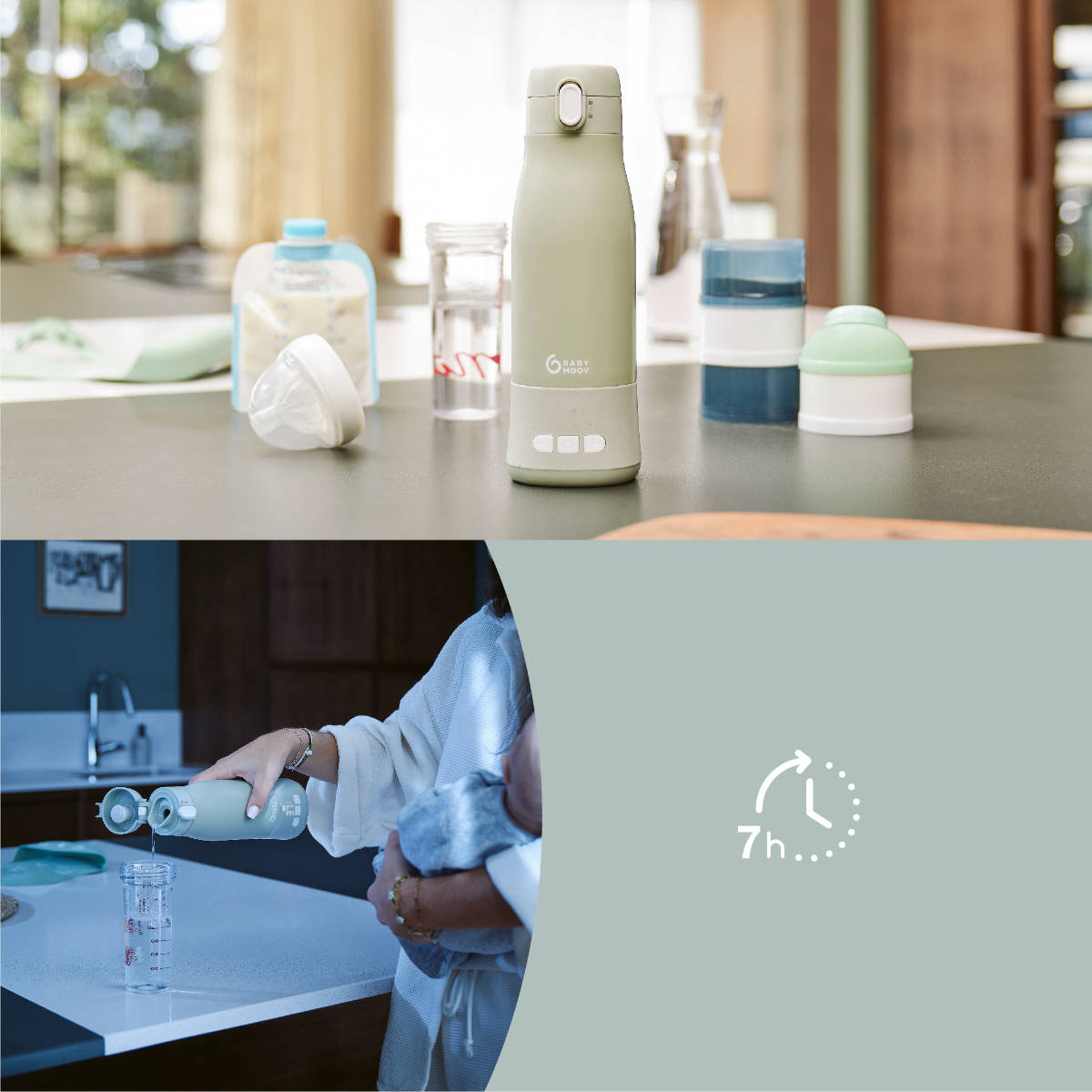 De Babymoov Moov & Feed is jouw ideale partner tijdens uitstapjes met je baby. Of je nu in de auto zit, wandelt, in een café bent of ’s nachts voedt – met deze draadloze flessenwarmer heb je altijd warm water bij de hand.
