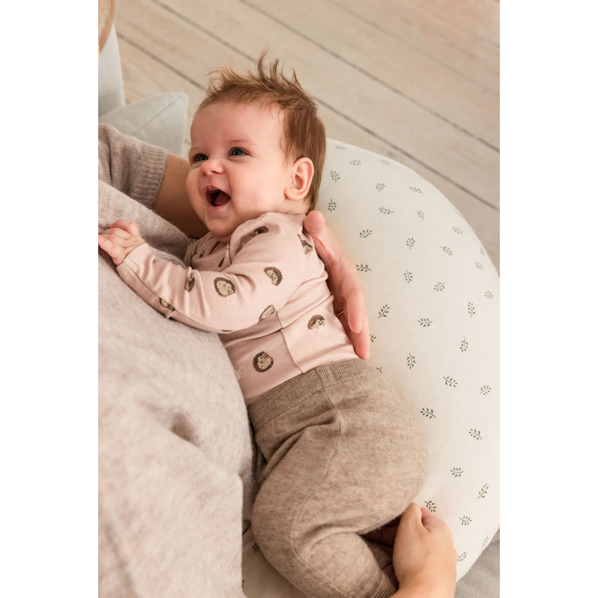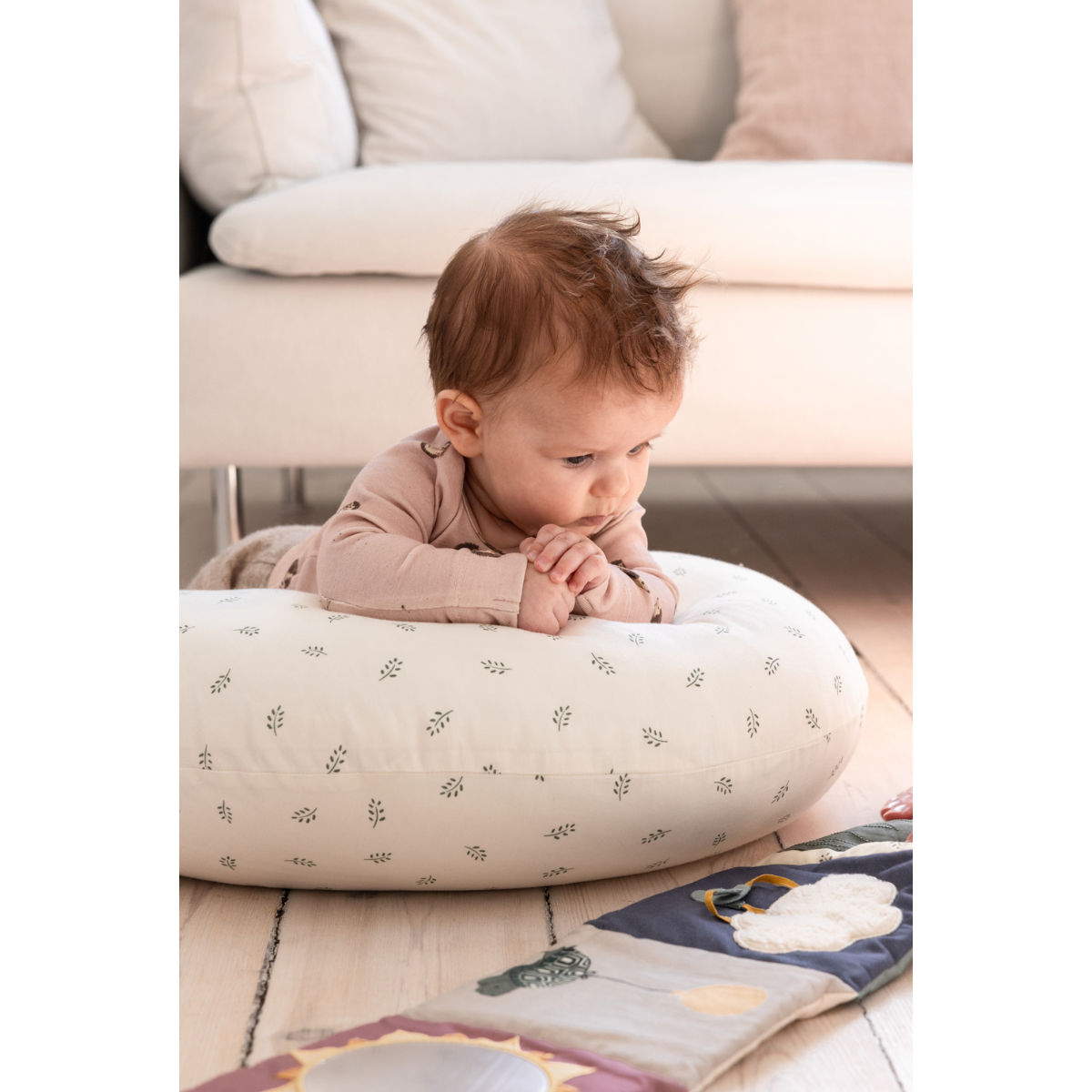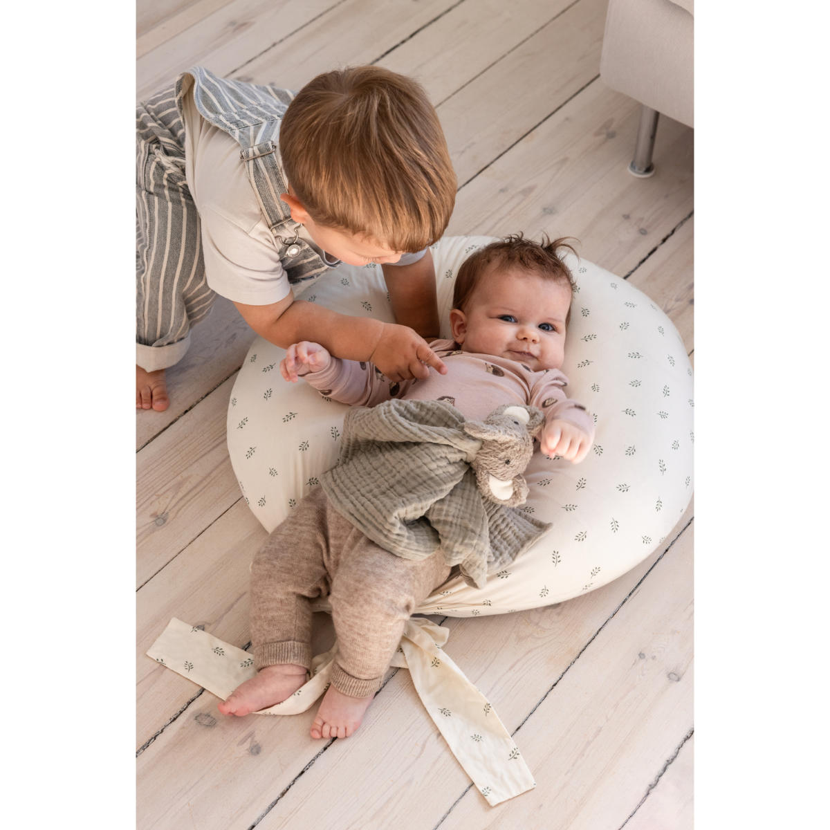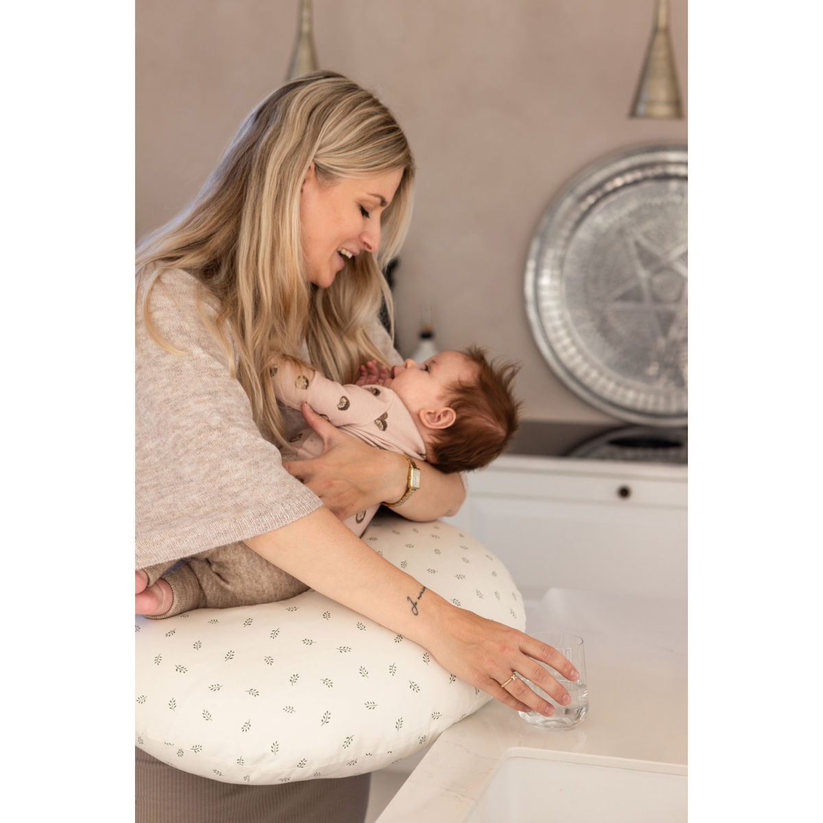 Al vóór de geboorte biedt het voedingskussen ondersteuning door rugpijn te verlichten en een comfortabele slaaphouding te bevorderen. Plaats het bijvoorbeeld tussen je knieën om de buik te ontlasten, of gebruik het als steun in de onderrug. Na de geboorte wordt het kussen een onmisbare metgezel tijdens het voeden of geven van flesjes, zodat je nek- en schoudergebied kan ontspannen. Bovendien kan dit voedingskussen in de eerste levensmaanden van je baby worden gebruikt als praktische steun bij het spelen en voor het trainen van rug en nek.
