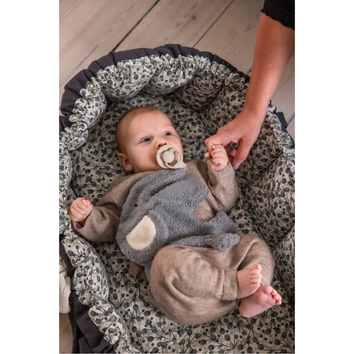 Fanto’s zachte oren en geknoopte staart nodigen uit om vast te pakken en te ontdekken. Dankzij de klittenbandsluiting aan de slurf kun je de speen veilig bevestigen – ideaal voor in de kinderwagen, autostoel of wieg. Zo is de speen altijd binnen handbereik.